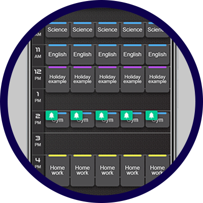 Executive functioning is improved throughout the day with custom text reminders. User engagement is rewarded with animations, graphics, and trophies.