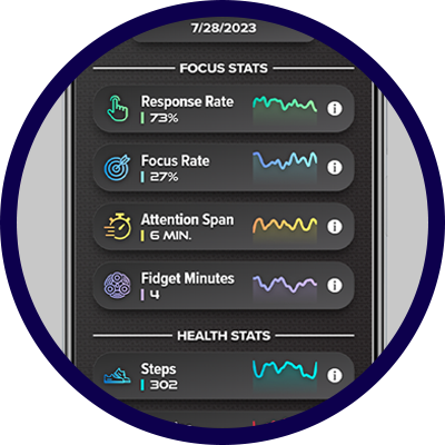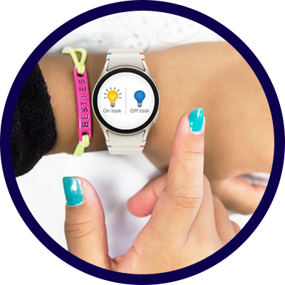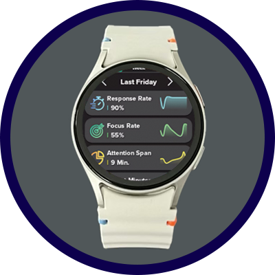 The Revibe® wearable platform leverages the power and reliability of Samsung award-winning hardware to deliver personalized vibration and text reminders that enhance focus and attention by bolstering self-regulation. Data is securely collected both actively and passively, and is analyzed through an AI assessment platform, offering clinicians, educators, and caregivers actionable insights for informed decision-making, monitoring progress, and tailoring interventions to each user.